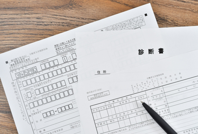 医師による診察、必要に応じてレントゲン・MRI(提携先にて)などの検査を行い、体の状態をより詳しく確認します。診断後、当院が書類作成をサポートいたします。